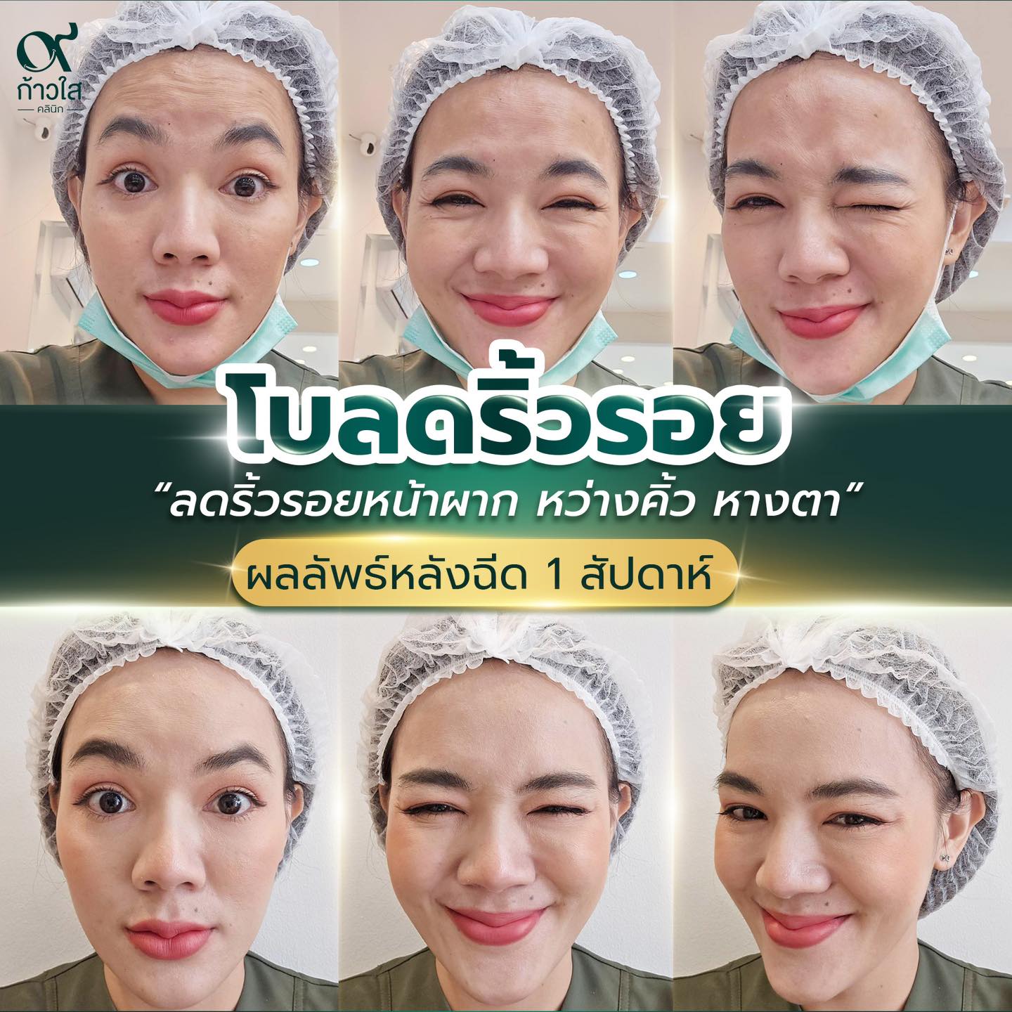 รีวิวผลลัพธ์ หลังฉีด Botox ผ่านไป 2 สัปดาห์ ลดริ้วรอยก่อนวัย หน้าเด็กขึ้นทันที! ช่วยบล็อคริ้วรอยจากการแสดงสีหน้าและอายุ ทำให้ผิวตึงกระชับ ดูอ่อนเยาว์แบบเป็นธรรมชาติ
